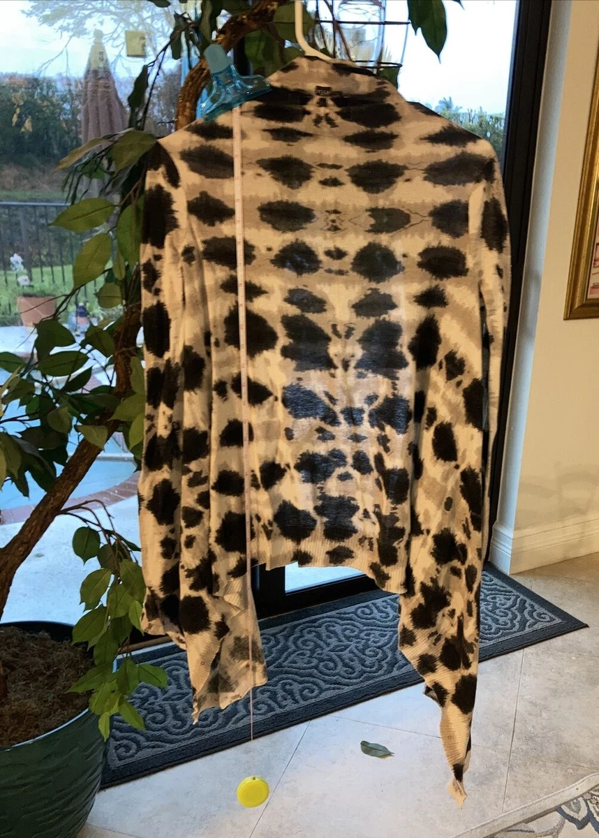 Billabong Womens Small Sweater Cardigan Beige Black Animal Knit Asymmetrical Ebay